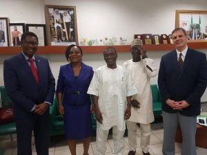 The Executive Secretary of the American Business Council, Ms. Margaret Olele, Economic Counselor to the US Consulate, Michael Carney and the Managing Director of UPS Nigeria Ralph Ozuode held a dialogue recently with the Chairman Business and Rules Committee, House of Representatives Hon. Gyang Pwajok (SAN) on best practices in the Courier/Logistics Sector.