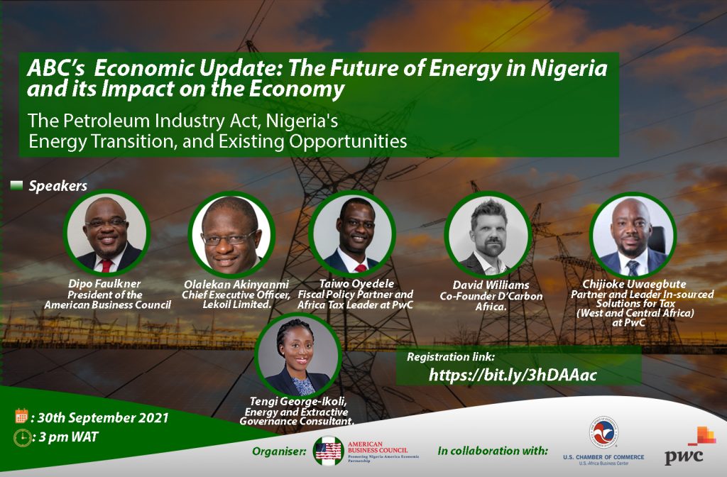 The American Business Council in collaboration with the US Chamber of Commerce and PwC Nigeria invites you to attend a virtual event being held Thursday, September 30th at 3 pm WAT - ABCs Economic Update: The Future of Energy in Nigeria and its Impact on the Economy. Register to attend here ABCs Economic Update: The […]